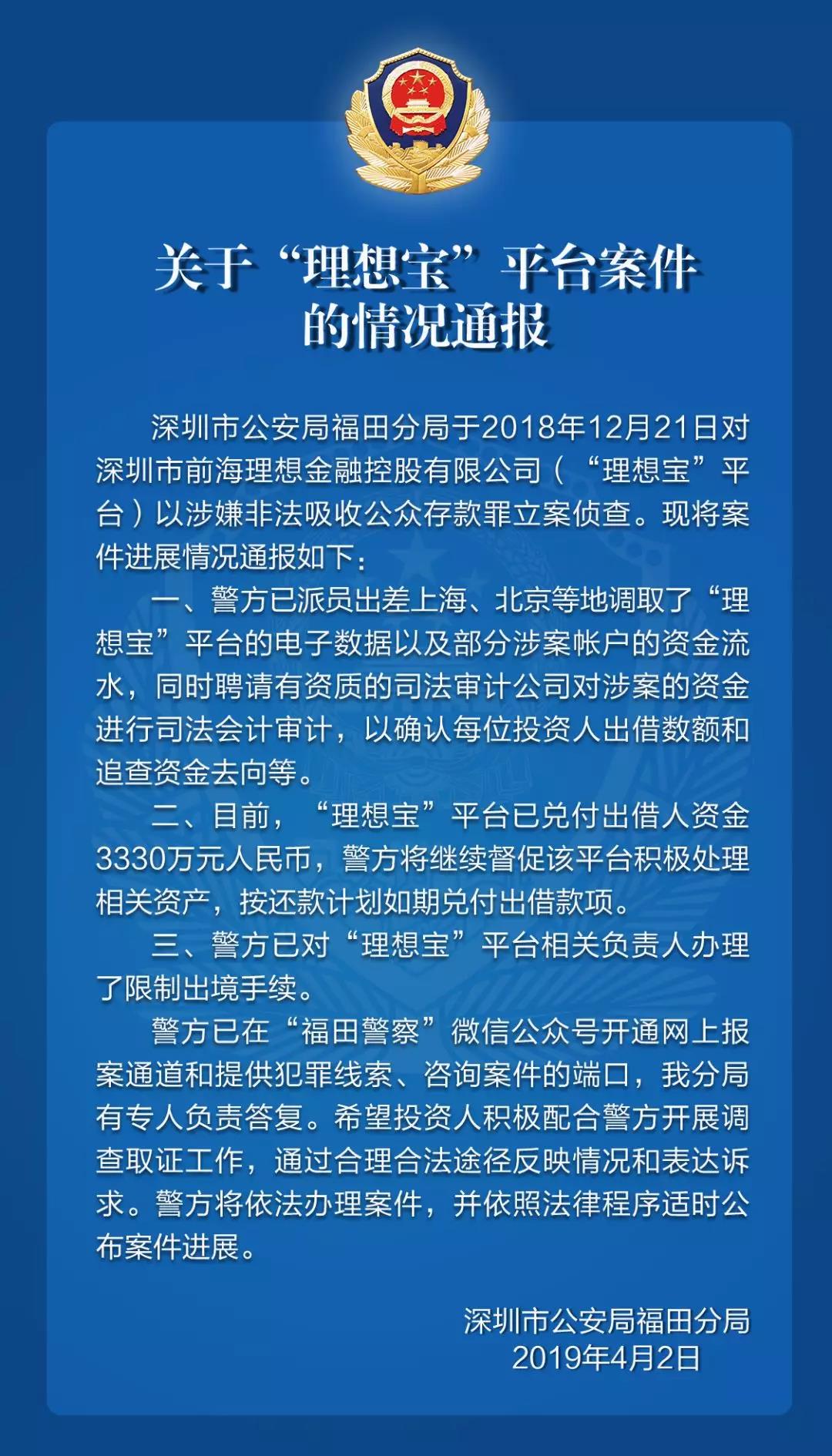关于“理想宝”、“三加壹”平台的案件情况通报