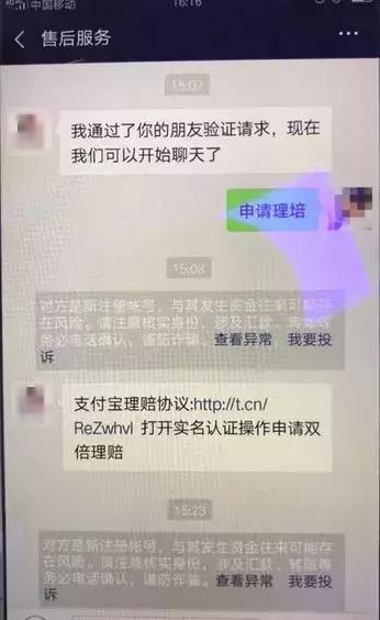 对方自称物流售后,填写信息后可申请三倍赔偿