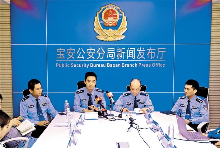 宝安公安分局打掉特大诈骗团伙新闻发布会现场。
