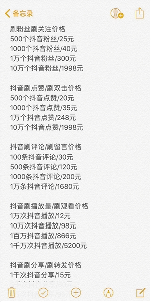 抖音刷粉、点赞等“业务”收费价格。