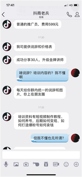 事实上,戴斌并没有通过抖商赚到钱。1个月前,他支付了2999元加入一家“抖商培训机构”学习发现,对方并没有任何干货,反而极力建议他通过“拉人头”获利。