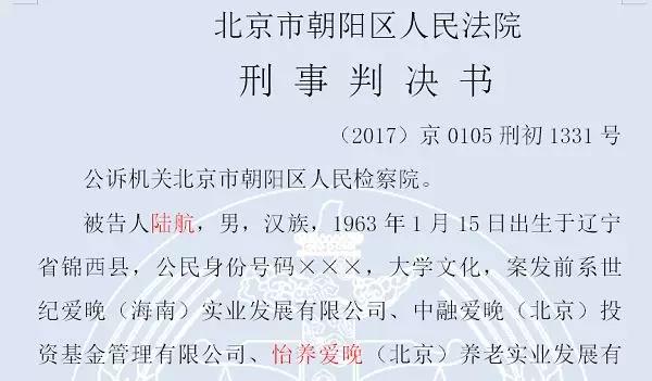 报道发布后,案件首犯、怡养爱晚实际控制人陆航被警方逮捕。经过司法部门两年多的搜证、审理工作,2018年12月4日,北京市朝阳法院作出判决。