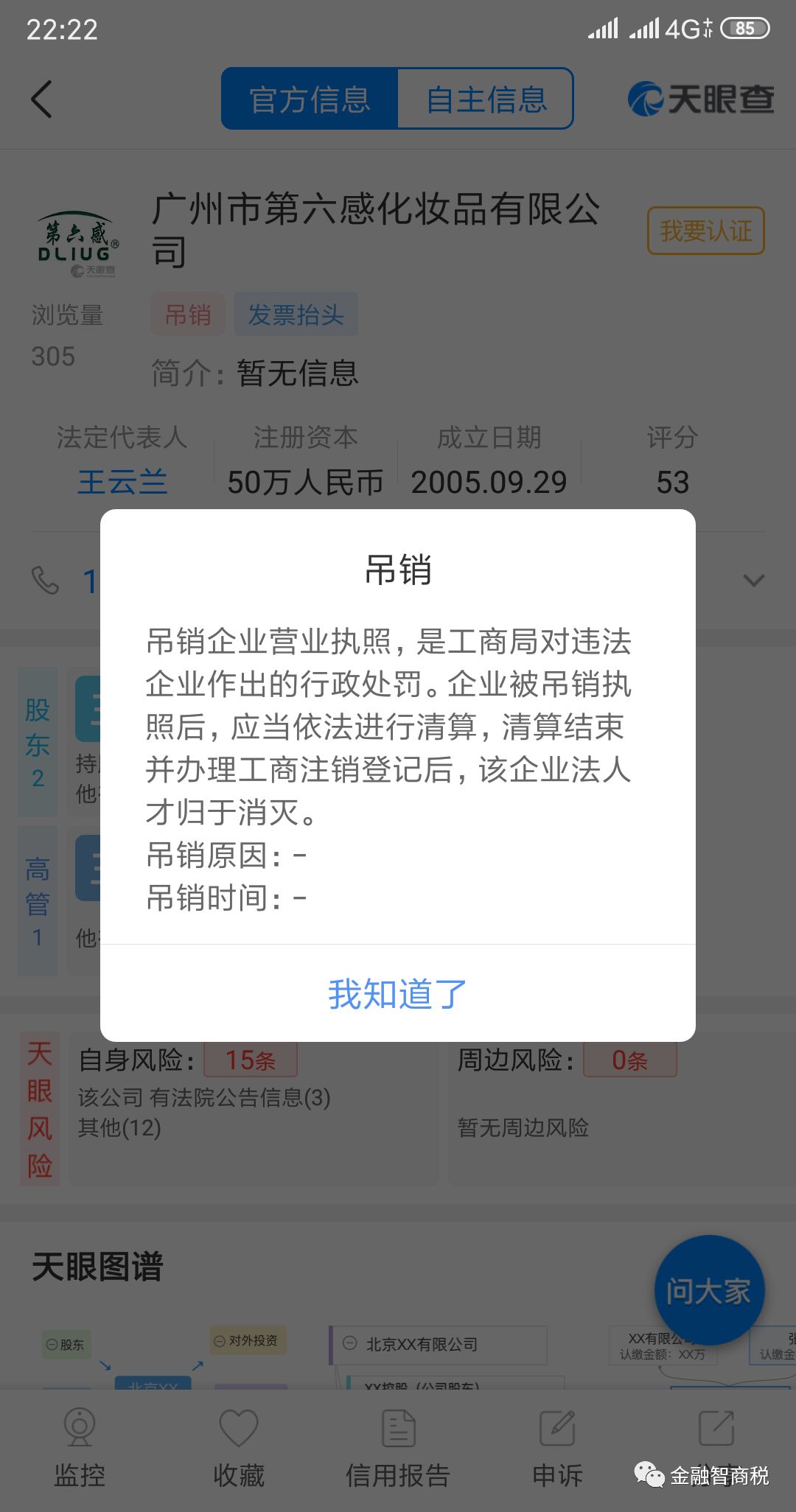 那么,在东北三省的“欧莱雅第六感”传销团伙与广州第六感化妆品公司到底是什么关系呢?金融智商税通过天眼查查询发现2005年9月29日王云兰在广州市白云区注册成立第六感公司。值得注意的是,第六感公司在去年已经被白云区工商局吊销了营业执照。