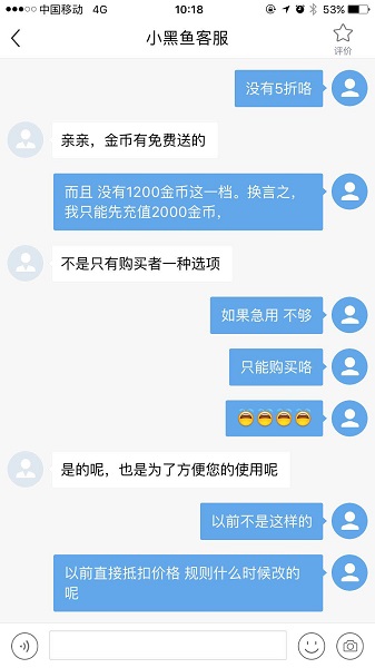记者就此咨询小黑鱼APP的在线客服。记者算了一笔账,假设账户无金币要购买,这笔45.8元的电影票,45.8(原价)+20(充值金币)-12(金币抵扣)-18(最高优惠价)=35.8,实际成本花费35.8元,算下来约7.8折,并没有达到所谓的5折。该APP客服承认,规则确实发生了改变,不再是直接支付折扣价,并称已经实行了一段时间。