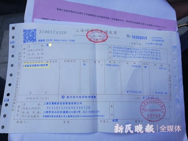 联系不上“贝易教育”有关负责人张某,记者查询有关公开信息发现,该公司虽然从事着教育培训业务,但其工商注册主体——上海贝翼教育投资管理有限公司的经营范围只是“教育投资管理”,“从事计算机领域内的技术咨询、技术开发、技术转让、技术服务,摄影服务(除扩印)”,“销售服装、玩具、工艺品、纺织品、日用百货、文具用品,健身服务,保健按摩(除足浴)” ,并无教育培训内容——家长们提供的收款凭据显示,其预收“培训费”的其它由头为:“信息技术服务费”、“服务费”。