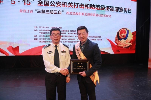 启动仪式上,浙江省公安厅副厅长金捷向电视台著名主持人颁发了浙江省防范经济犯罪宣传大使聘书,团省委副书记王慧琳向共青团防范经济犯罪宣传志愿队授旗。来自杭州滨江高教园区5所高校近700名大学生参加了活动。