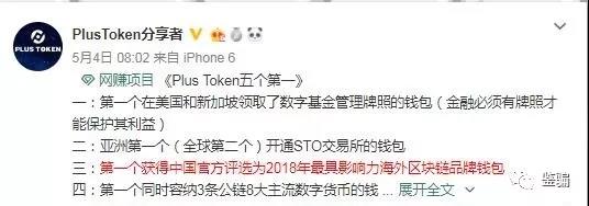 据某区块链自媒体发文称,截止2019年4月份已经近有170多个国家300多万用户使用plus钱包了。按照该自媒体的说法,“PlusToken”已经逐渐成为数字货币领域全球用户数仅次于“imtoken”的第二大数字货币钱包。而有其他投资者在微博发文称,“PlusToken”目前已经覆盖全球180个国家,注册使用用户超过300万。