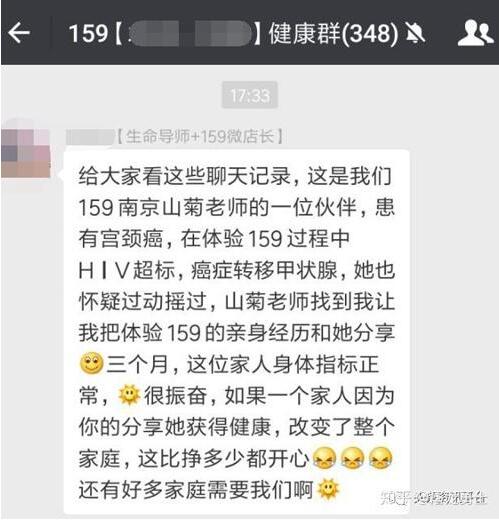 此外,北京市凯诺律师事务所律师张新年指出,代理商在微信群中分享“159”治愈疾 ⒓醴适萆淼某晒Π咐涉嫌虚假宣传,“医疗广告的发布,必须事前经卫生部门进行内容审查,涉及中医、中西医结合的,还需要中医药管理部门审查和工商部门的监督”。
