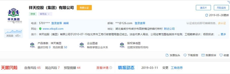 天眼查数据显示,祥天控股(集团)有限公司注册于2010年,起初为房地产公司,曾两次更名。该公司共有133条专利信息,包括微型空气动力发动机、气动车辆等发明专利。