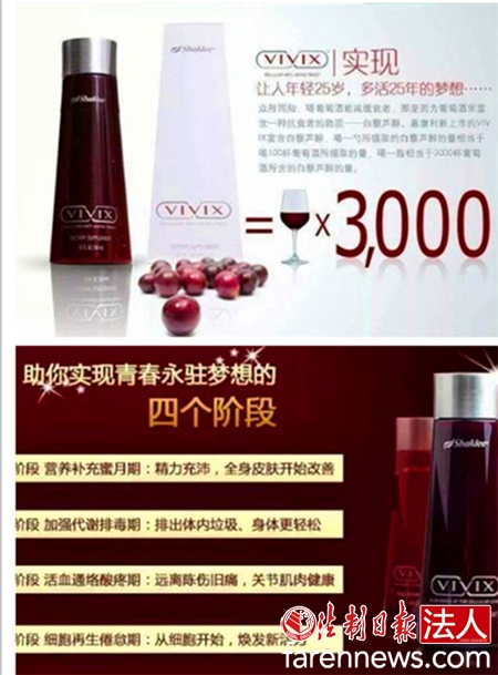 而嘉康利的VIVIX,最终也成了催命符:2015年,被嘉康利虚假宣传忽悠上当的消费者李某购买了嘉康利的维唯思符合果蔬汁饮料(VIVIX),并服用数日。不料,几日后,李某就突然死亡。经过鉴定,李某服用嘉康利维唯思复合果蔬汁饮料(VIVIX)在死亡后果中的参与度为25%,嘉康利因此被判赔偿李某家属206737元。