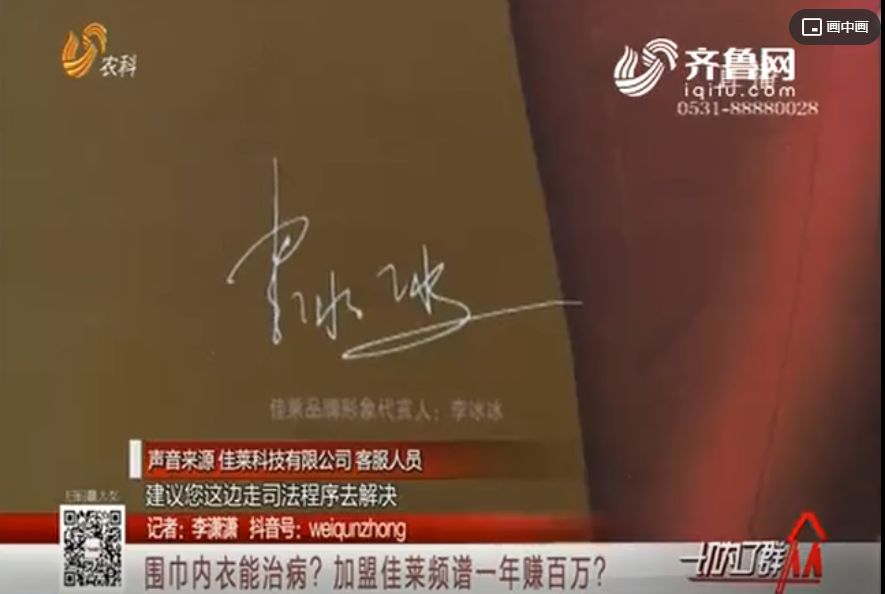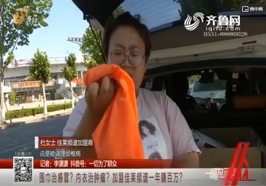 佳莱频谱的加盟商刘先生补充道,他们宣称“这不是一条围巾,而是一台围巾,这是一台医疗器械,能治病的医疗器械。”