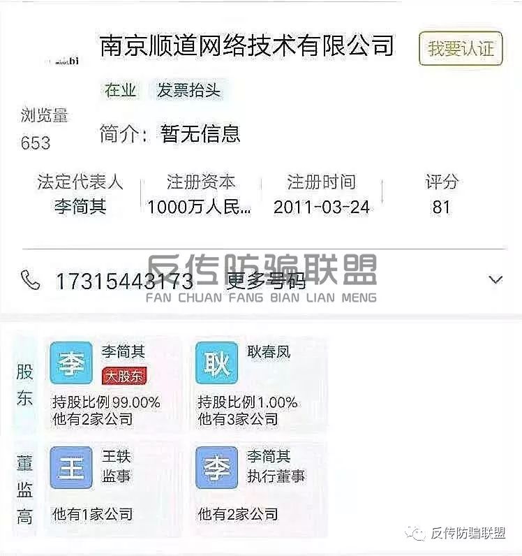 综上所述,本网对李简其所在公司进行了调查,据天眼查消息:南京顺道网络技术有限公司为超范围经营,其监管牌照并没有从事电子钞、等分码的权限。工商行政管理部门通过登记的住所与经营场所无法取得联系,经营异常。该公司的官网现在也无法访问。这一系列问题都能说明该公司其本质都是一个骗局。