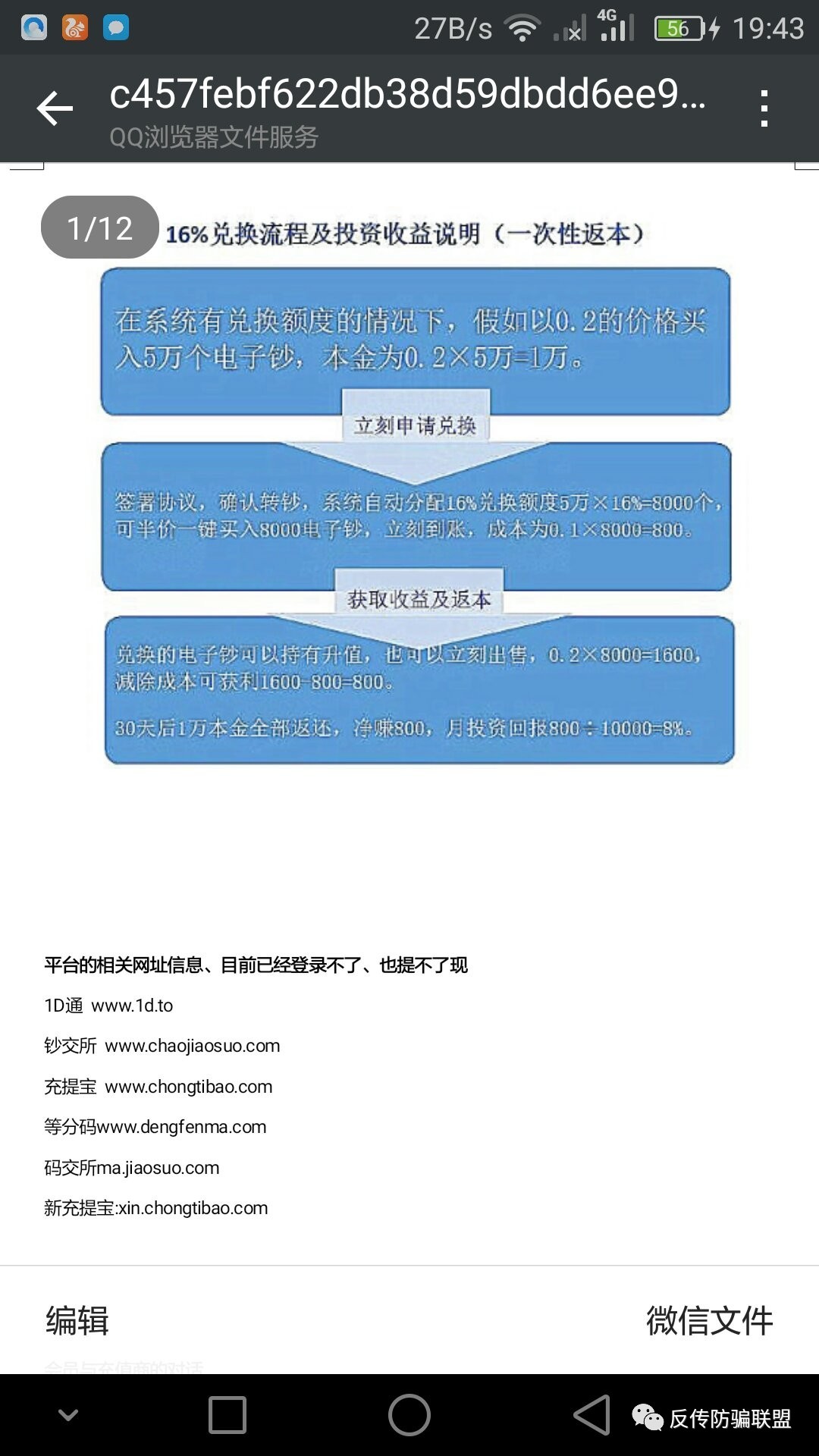 到了18年5月份,公司又开始推出新的投资项目。这个项目叫“兑换活动”,只要充钱买入、平台会赠送一些电子钞,利润在8%左右,承诺30天后百分百全额返本金。投资人和她先生又投资了11万5,一直到2018年11月22号,老板跑路、平台关闭,凌晨四点多的时候解散所有群。