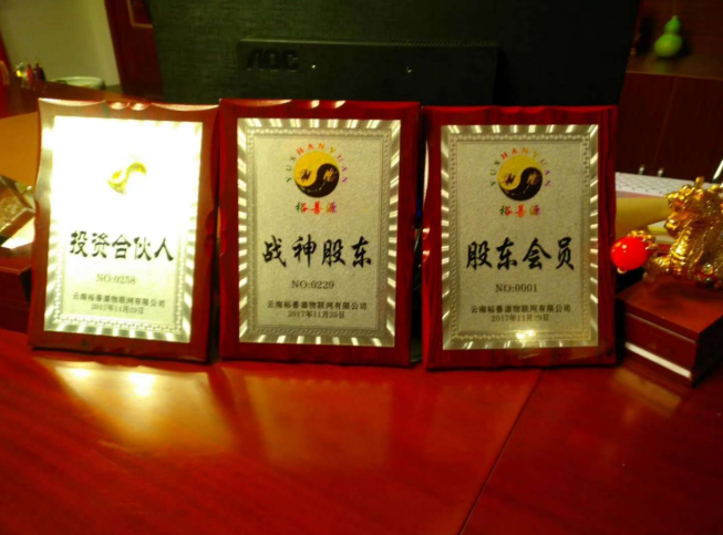 据公司内部推广人员称,只要在云南裕善源物联网有限公司投资购买他们的财富金牌就能获得公司原始股份,未来公司只要上市就能获得公司的股份分红,当然,投资的越多未来获得的就越多,所以分为以下投资方式: