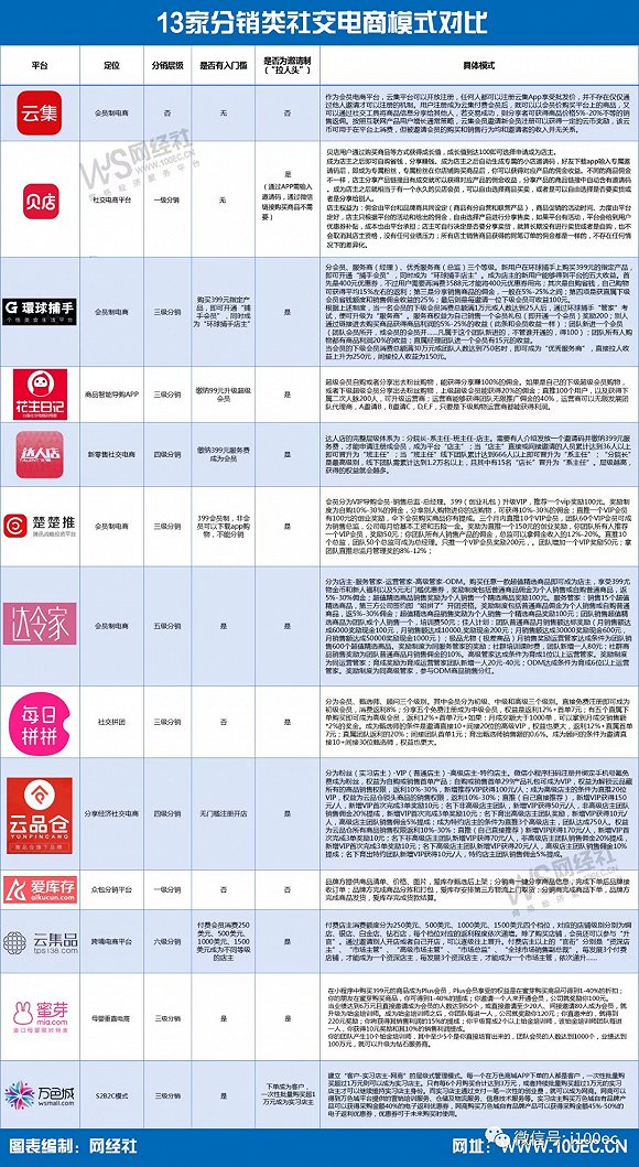 附:13家分销类社交电商模式对比图: