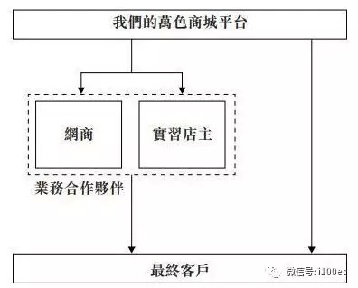 在万色城发展早期,其主要依靠微信等社交网络来推广和销售其产品。万色城建立了“客户-实习店主-网商”的层级式管理模式。每一个在万色商城APP下单的人都是客户,一次性批量购买超过1万元则可以成为实习店主。只有每6个月购买合计达到3万元,或者持续批量购买超过1万元的实习店主才可以继续维持实习店主身份。而实习店主通过支付一笔一次性的创业费,就可以成为网商。网商可以得到万色城平台提供的营销培训服务、仓储及物流服务、信息技术服务等。