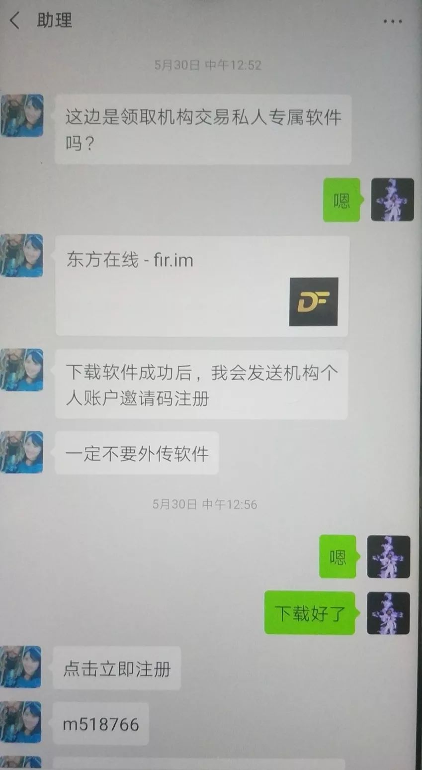 很快,刘先生被拉入一个只有30几个人的小微信群,起初他也就是看看,后来发现群里不少“股友”都说赚钱了,还有各种“感谢老师带着赚钱”之类的话。刘先生彻底信服了,于是按照“群主”发的链接下载了一个名为“东方在线”的手机小程序,开通了“股票账户”,转入15万元后,按“老师”的指令买了一只股票,没想到第二天就亏了5000元,随后几天,亏损不断扩大,可“老师”却要求他继续持股等待。到6月初,平台已无法登录了。“老师”仍在直播间里忽悠,平台正在维护,过两天就好。