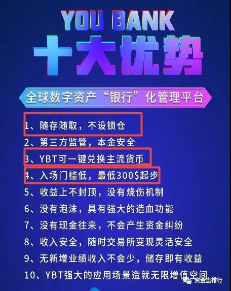 “Youbank”就是一个存币生息的资金盘。套路和MGC、Tokenstore一样。主流币去换Youbank传销币YBT。到头来关盘跑路。小编说过,存币生息的项目就是资金盘,外在无论如何包装,也掩盖不了传销的事实。大家还需谨慎对待,别到被骗了在后悔。