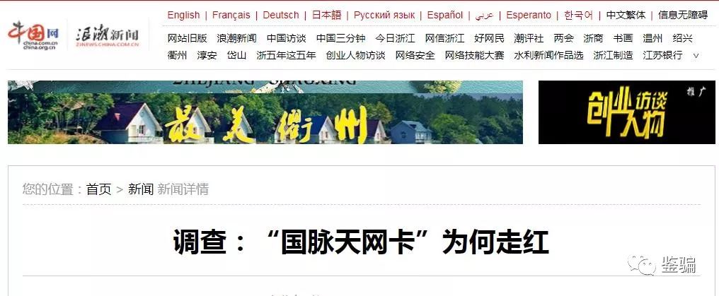 鉴骗通过检索到中国网在今年5月9日发布了一篇《调查:“国脉天网卡”为何走红》的文章。该文章内容主要阐述了法律专家为国脉电信公司出具的《法律专家意见书》的相关内容。