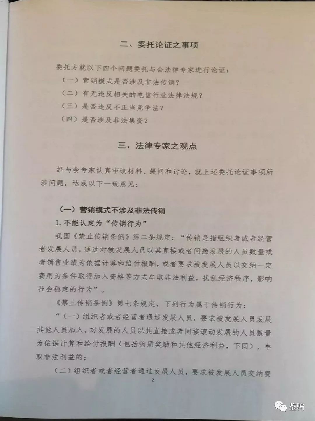 鉴骗发现,上述《专家法律意见书》的内容存在歪曲法律的嫌疑。按照我国2005年出台的《禁止传销条例》规定,下列行为属于传销行为: