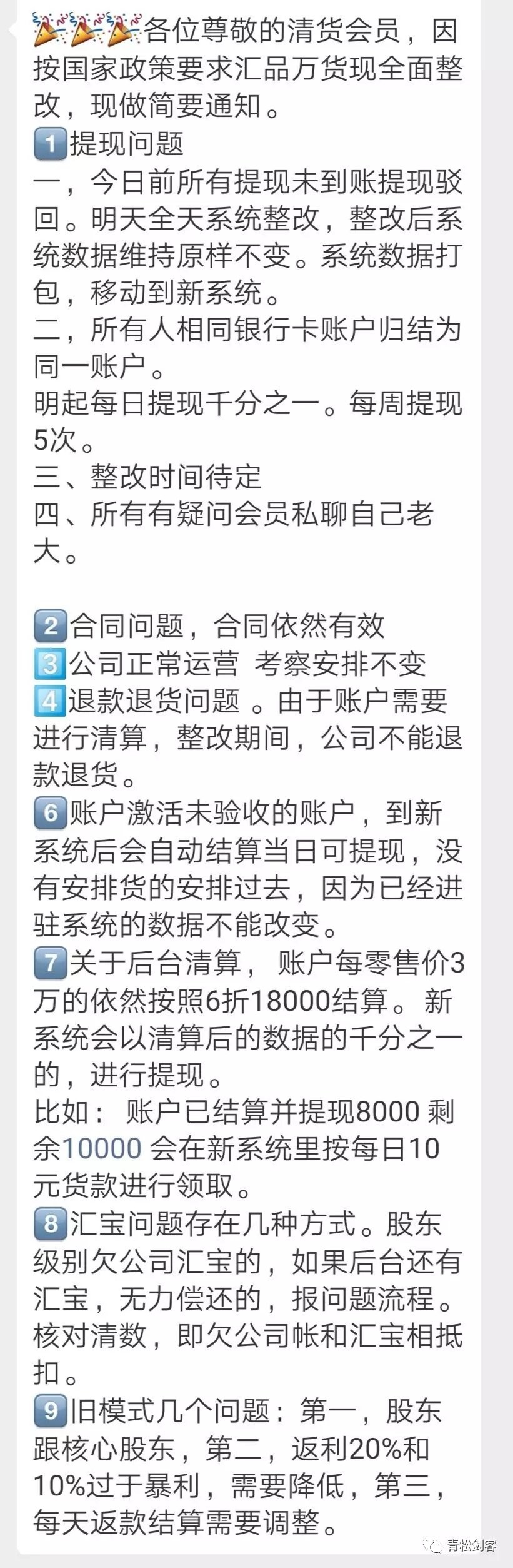 在对各大核心进行封口之后,大量会员群解散,公司9日发表整改公告