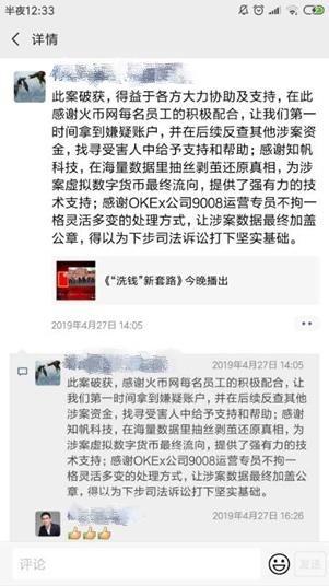 此前,火币、知帆科技、OKEx曾配合洛阳警方破获诈骗案件。据警方工作人员在朋友圈中的描述,公开致谢火币积极配合,在第一时间提供嫌疑账户信息,并主动反查其他涉案资金,找寻受害人给予支持和帮助。知帆信息则利用大数据还原真相,提供资金流向,OKEx则让涉案数据最终确认,为司法诉讼打下坚实基础。