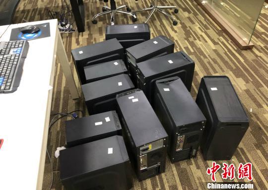 现场查扣涉案电脑 长兴公安提供 摄