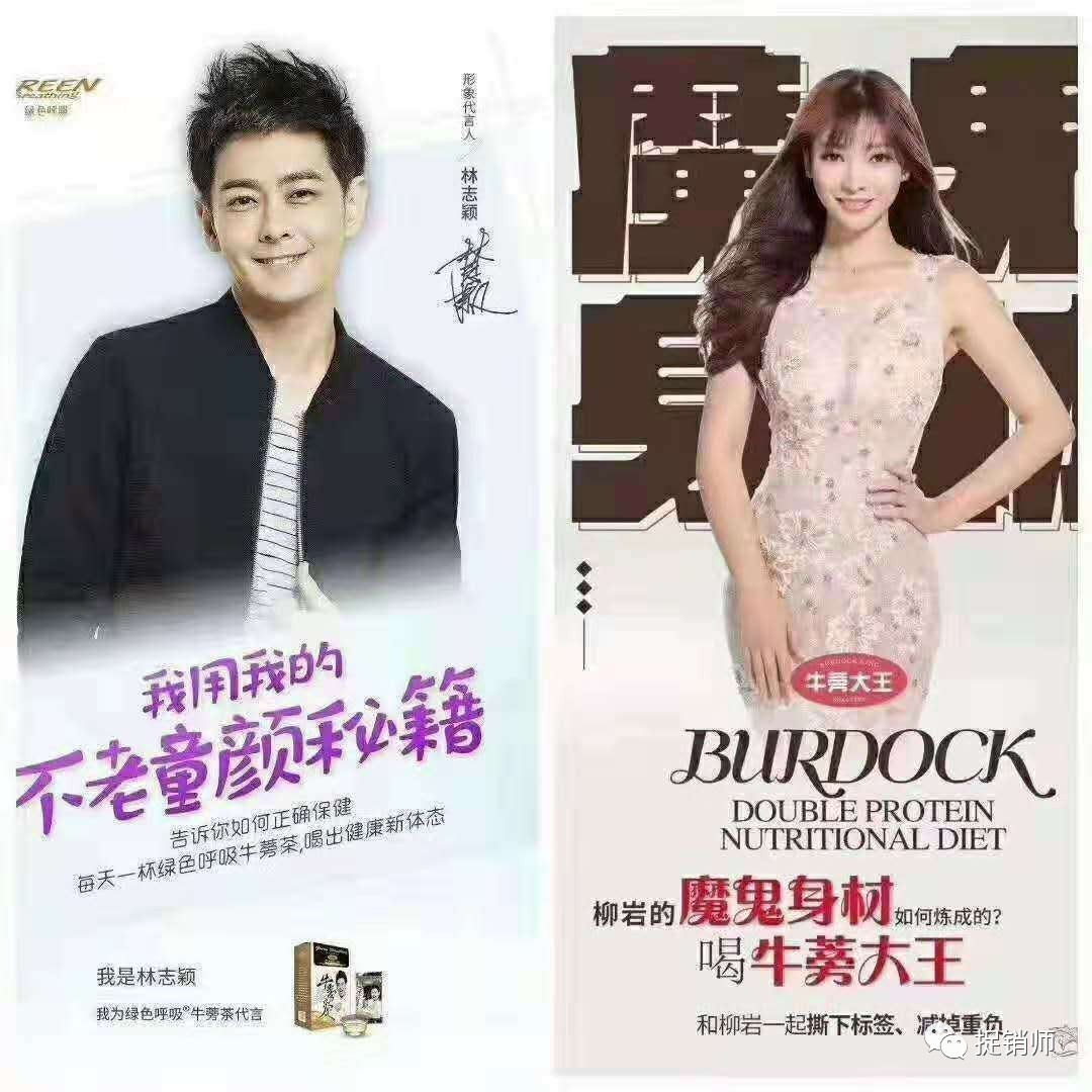 据悉,牛蒡茶由林志颖代言,主打健康塑形的牛蒡大王相关产品由郭富城和柳岩共同代言代言,前央视主持人水均益在泰国演唱会现场担任主持并宣布牛蒡大王新品发布。