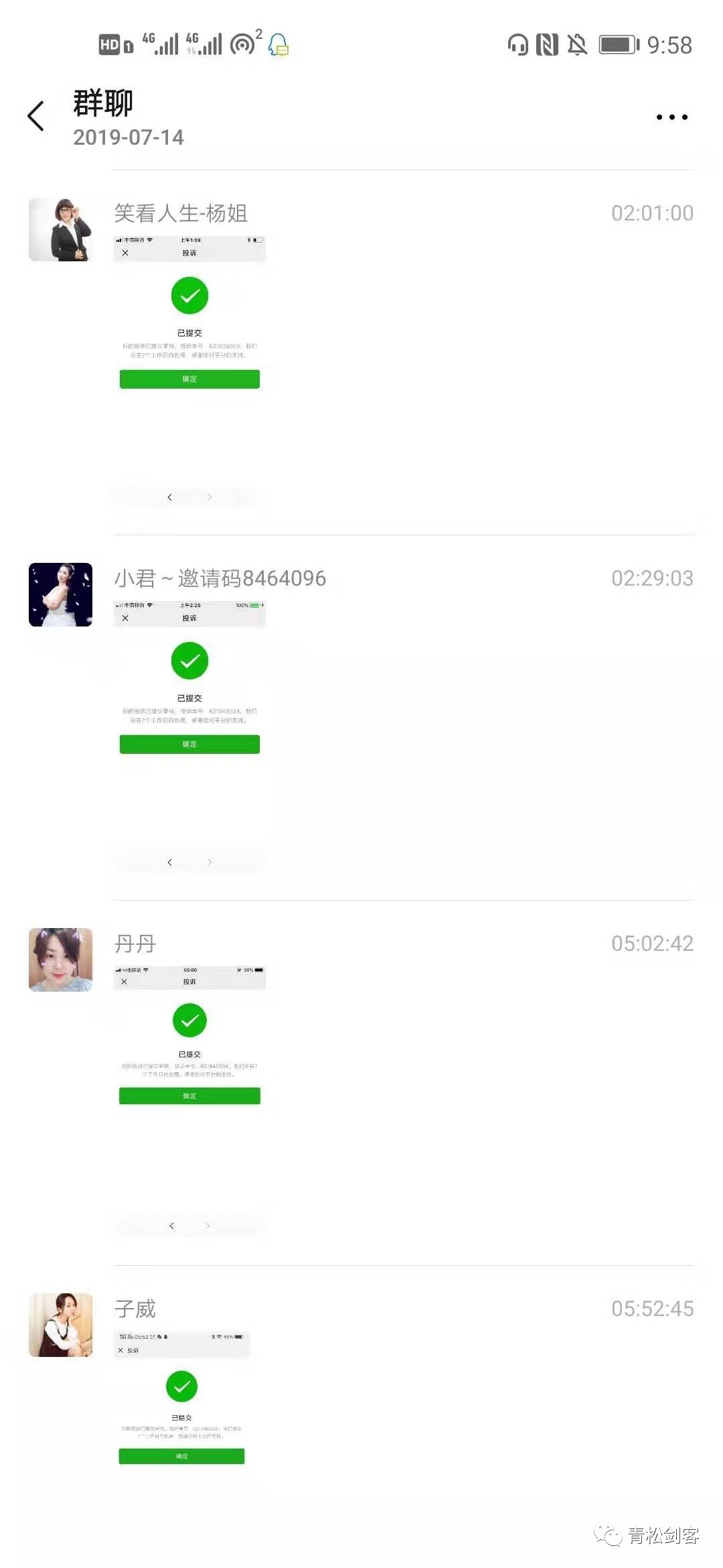 收到这个也就算了,有很多人说,我发文没尊重别人隐私。但是下面这些人,我征询了多方意见,决定零打码毕竟人总要为自己的行为负责任。各大维权群的管理员看着处理波。