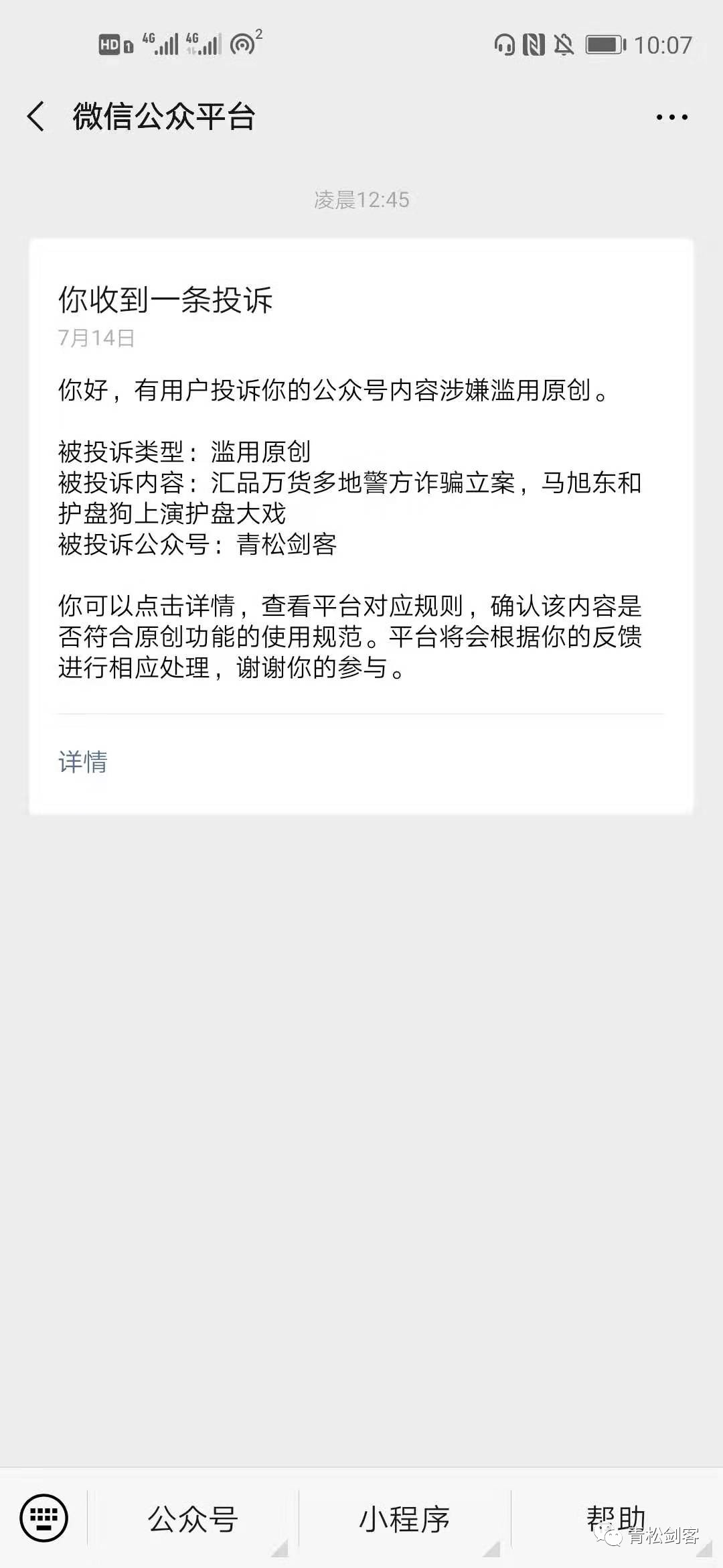 首先对于那些投诉的,本人深表感谢,因为你的点击让我又增加的阅读量。对于那些组织投 诉我的人,感谢你让我有机会把你放在我的文章里。(本人公众号文章都会更新到微博,头条,腾讯新闻,天天快报)