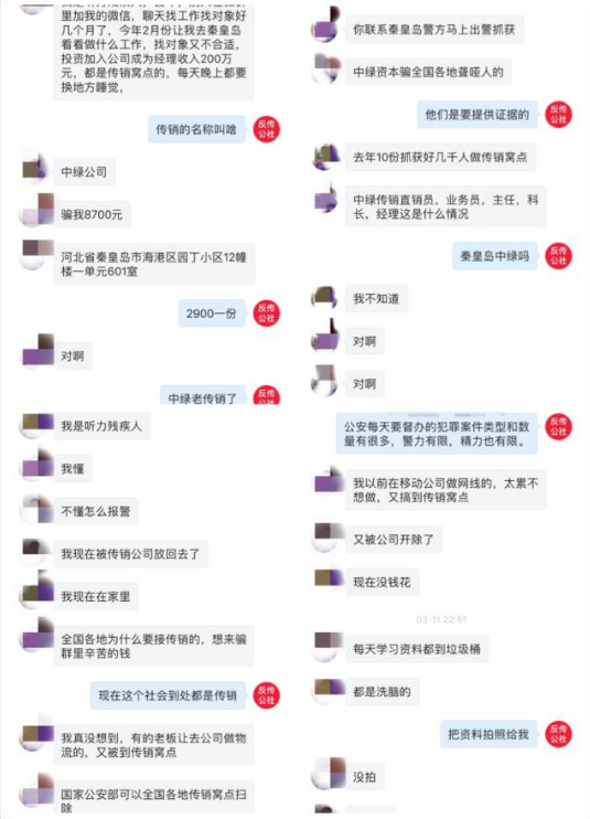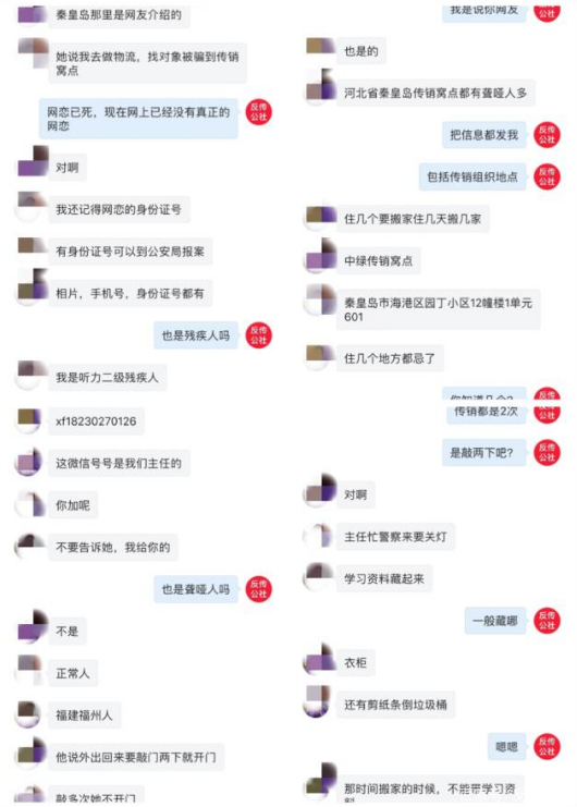 据小孙介绍,他们所待的传销组织,目前光聋哑人就多达几百号人。这几百号人每天都被严加看管,有的人已经习惯或者认可了这种简单粗暴的赚钱方式。只要你人去了,基本上是有去无回,身上的钱基本会被瓜分得干干净净。每天强制上课学习之外还要潜入全国各地聋哑人QQ群去搜寻目标,然后加好友骗感情再以各种理由邀约到秦皇岛,再去瓜分他人钱财。目前全国各地聋哑残疾人QQ群基本沦陷,均有中绿传销组织成员隐藏其中。