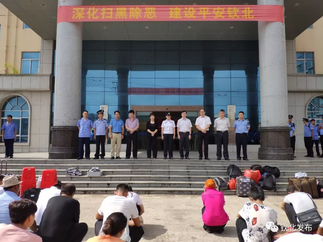 △市委、市政府和钦北区委、区政府相关领导在行动中对查获的涉嫌传销人员进行了集中思想转化教育训诫