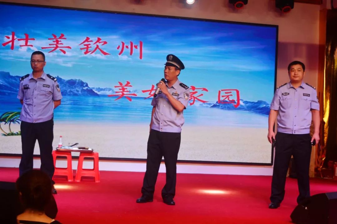 ▲钦南区副区长、公安分局局长钟松现场开展法制宣传教育