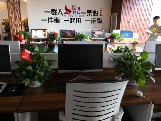 警方查封的诈骗窝点,诈骗团伙公司化运营,甚至有自己的口号。新京报记者 李玉坤/摄