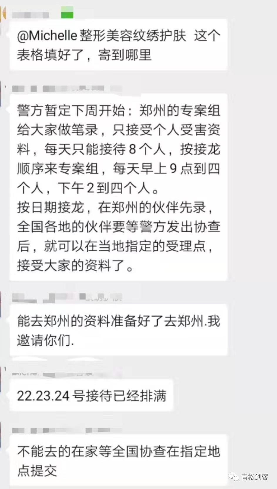 警方暂定7月22日开始:郑州的专案组给大家做笔录,只接受个人受害资料,每天只能接待8个人,按接龙顺序来专案组,每天早上9点到四个人,下午2到四个人。