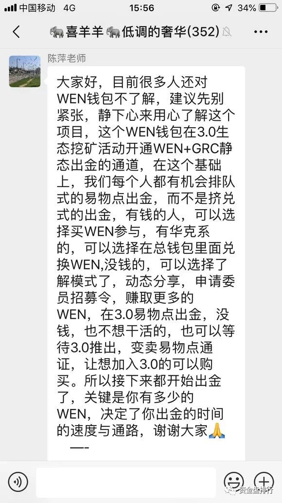 MBI张胖子现在又搞了个新套路,wen钱包挖矿然后开通wen+GRC静态动态出金。意思是你有多少wen决定你出金的速度,这意思也是很明显,就是让你充钱持有wen,才能获得出金的机会。这不就是明摆着想要入金,必须持有wen。其实这也是张胖子的套路,当你们准备买wen的时候拉高,然后过段时间,直接来个腰斩。又被他收割一波,然后找割理由说无法出金。