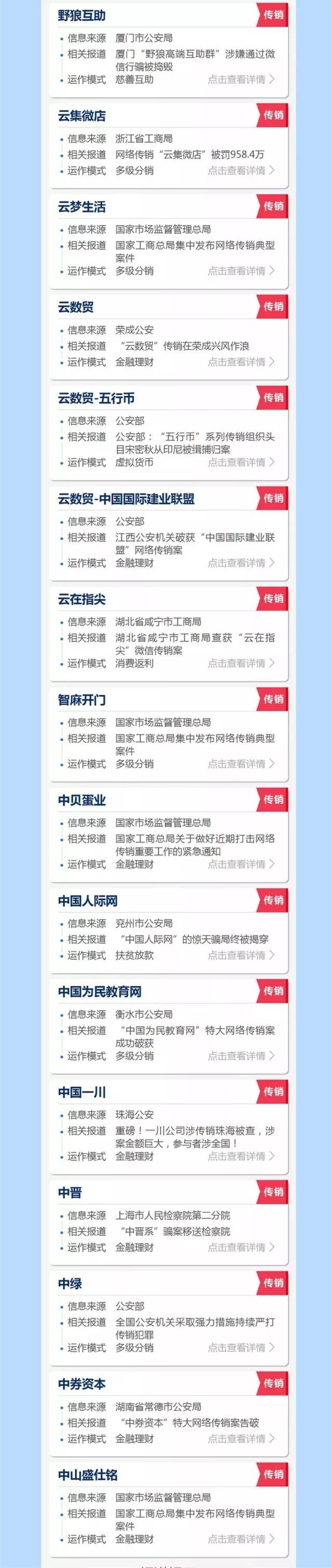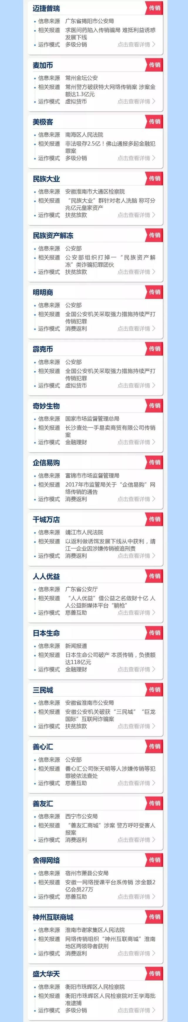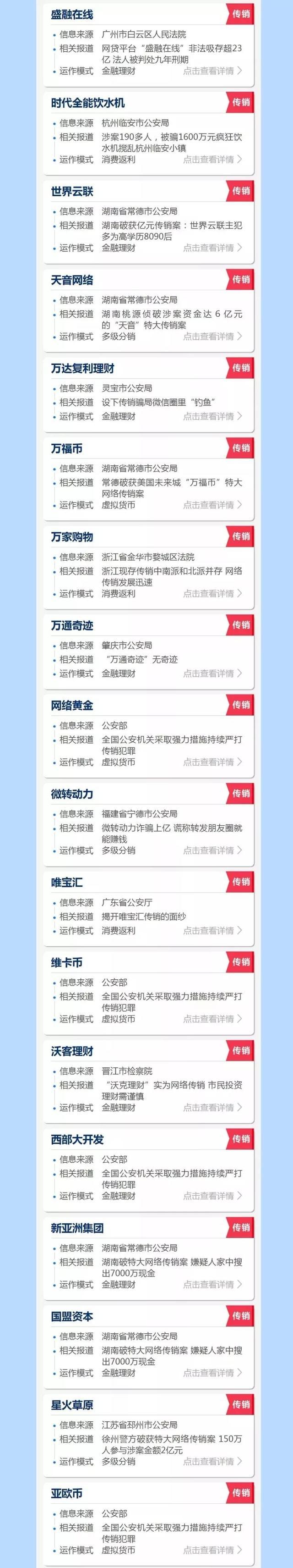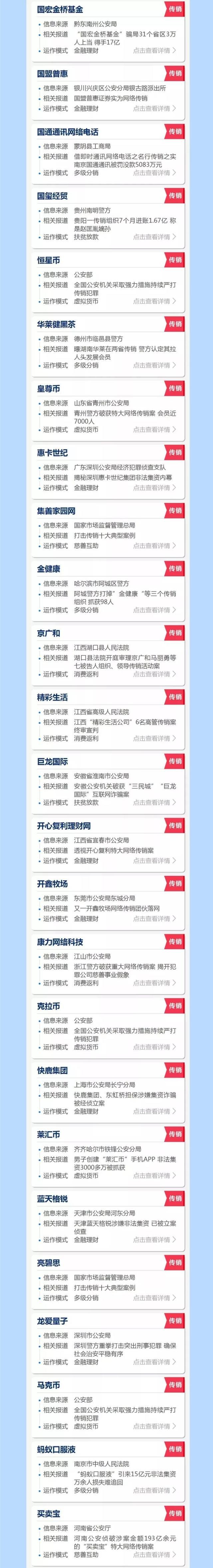 传销是社会的毒瘤。虽然传销的模式并不复杂,但普通人往往难以辨别。互联网与传销的结合,进一步增加了识别难度。为了避免大家上当受骗,根据国家各部门发布的权威内容并归纳以下涉及传销名单↓↓