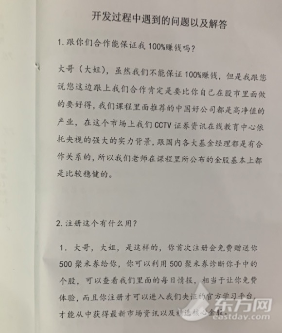 为了防止客户大规模投诉,公司还专门成立一个客服岗位,负责冒充资深的炒股老师。“这个客服存在的唯一目的就是安抚住客户,防止客户大规模的投诉。”黄晶表示。