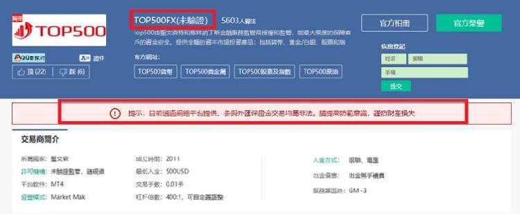 ▲Top500外汇平台自称受圣文森特和格林纳丁斯国监管