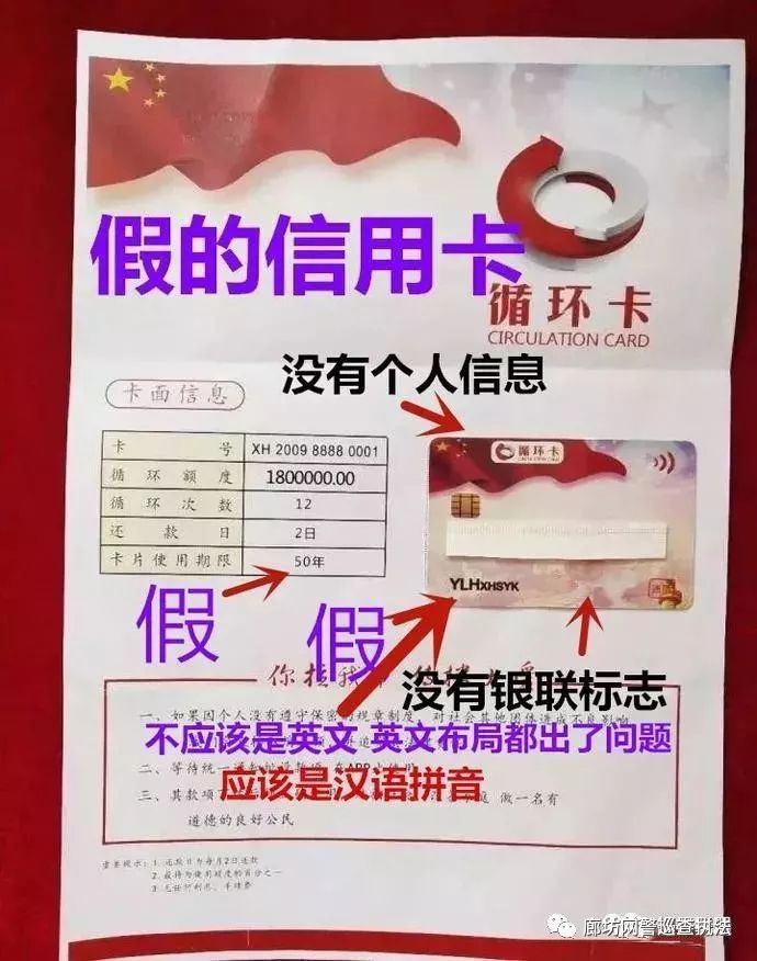什么是“循环信用卡”?骗子解释是这样的,假设一张信用卡月额度是5万元,使用者可以每月提现3.5万元,次月还款100-200元,额度又回归5万元,这样又可以提现3.5万元,每月循环以此类推!