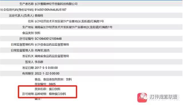 值得注意的是,国家市场监管总局官方食品生产许可获证企业(SC)数据库显示,赛隆瑙乐所获许可证为“植物蛋白饮料”。