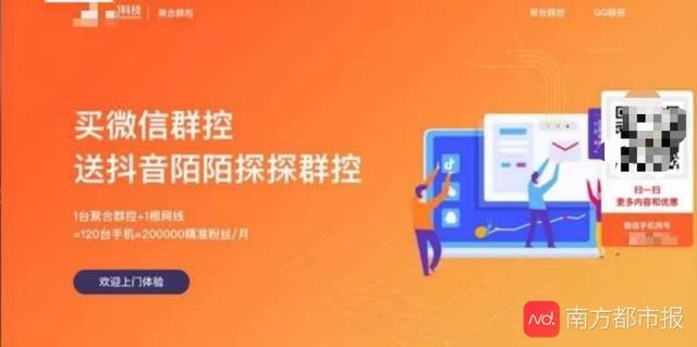 一个名为“x硕网络聚合群控”(以下简称“x硕”)的网站上则介绍称,“买微信群控,送抖音陌陌探探群控,1台聚合群控+1根网线=120台手机=200000精准粉丝/月”。