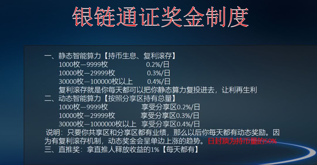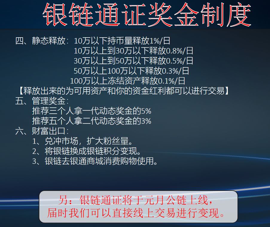 从以上奖金制度可以看出,该公司没有实体产品,利用虚拟币银币报单,扰乱国家金融体系,彻头彻尾地金融传销,希望国家执法部门尽快取证,迅速打击。
