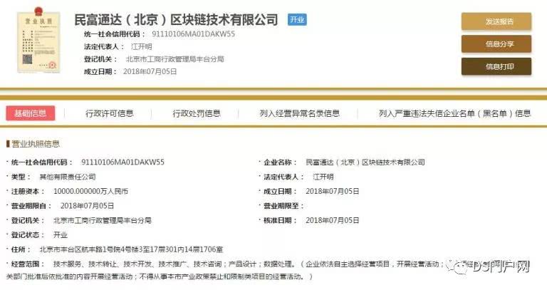 小编在国家企业信用信息公示系统查询到民富通达成立于2018年07月05日,注册资金10000万人民币。法人代表江开明,执行董事兼经理江开明,监事舒佳佳,自然股东有民富通达(北京)网络科技有限公司、北京银赫信息技术咨询有限公司。根据官方资料显示,根本不是国企投资,很显然这是一个谎言。