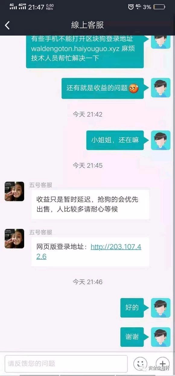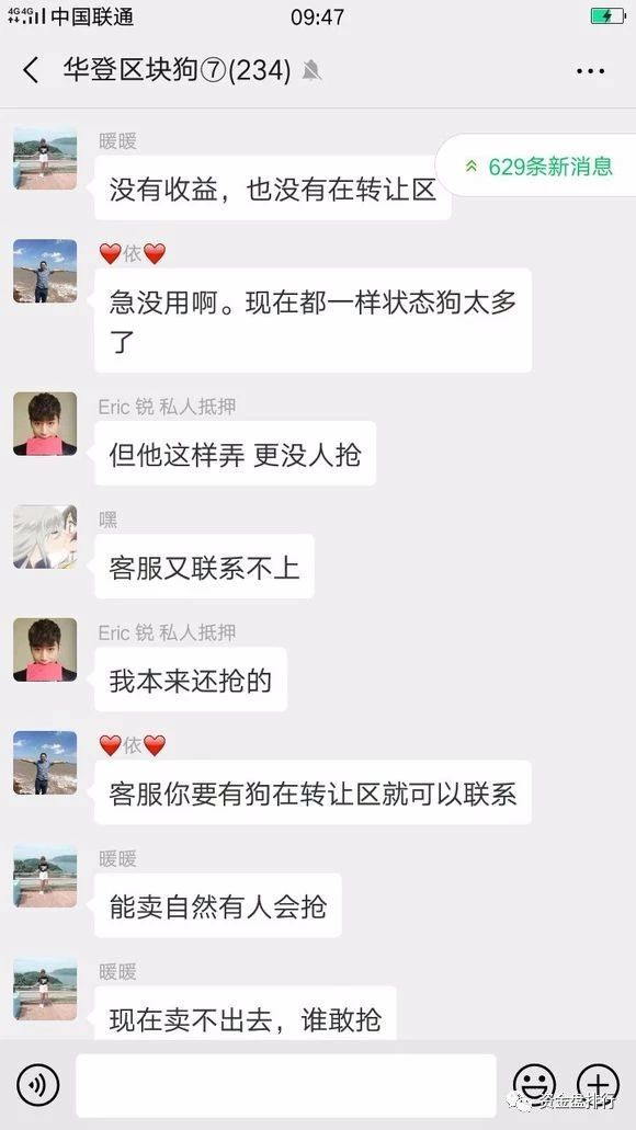 很多投资者狗都已到期,很多16/17号都该出售的,现在19号还在待转让。不抢狗永远不能转让。看看大部分会员群是不是这种情况,只能入金,不能出金,会员群的恐慌形势以及形成,可能操盘手要的就是这样。这样也能宣布另一种方式结束。
