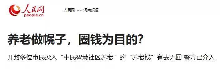 原文标题《开封多位市民投入“中民智慧社区养老”的“养老钱”有去无回 警方已介入》