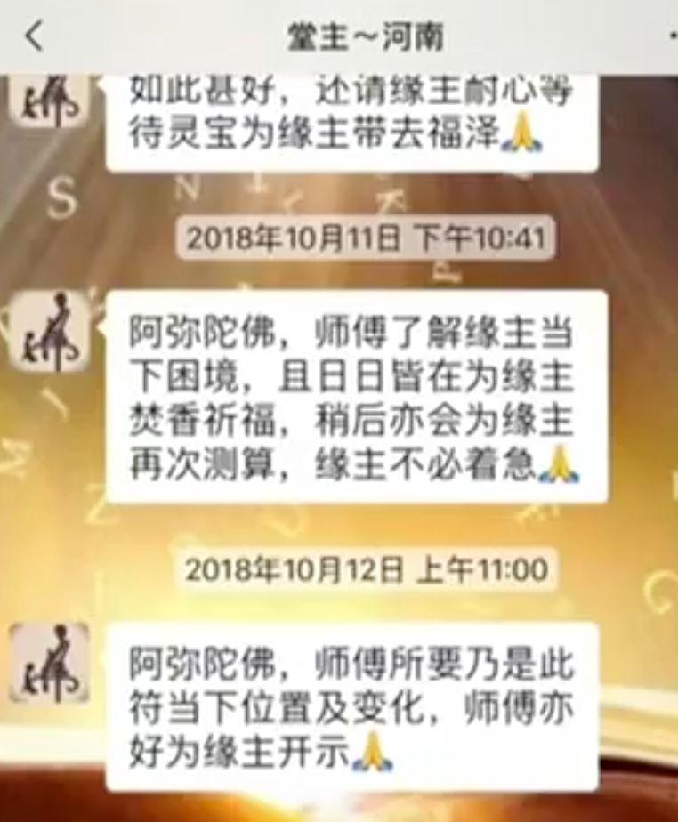 为了让被害人相信这些灵宝真的开过光,嫌疑人会将所谓的高僧开光视频通过微信发给被害人。