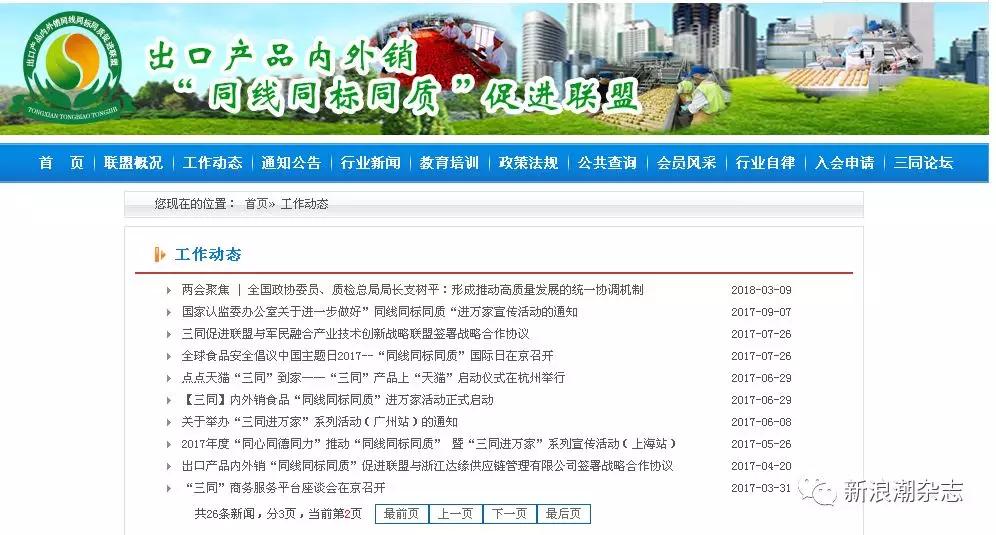 但新浪潮记者在三同促进联盟官方网站并未发现该联盟与大象联盟签约的信息。2017年4月20日,该联盟官网报道,出口产品内外销“同线同标同质”促进联盟与浙江达缘供应链管理有限公司签署战略合作协议;2017年7月26日,三同促进联盟与军民融合产业技术创新战略联盟签署战略合作协议。也就是说,重大签约该官网会有报道,不知为何没见大象联盟签约的报道。