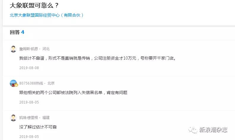 新浪潮记者就“大象联盟涉嫌传销”等相关问题致电大象联盟,其行政人员表示,也曾有客户反映过此问题,“我们公司目前仍在招收代理,可能在市场的宣传中存在一些不规范的行为。市场行为不能代表公司行为,目前,公司也在进一步加强管控。”