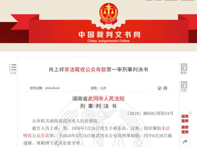 近日,武冈市人民法院依照相关法律的规定,以非法吸收公众存款罪,判处人肖某祥有期徒刑四年,并处罚金十五万元。